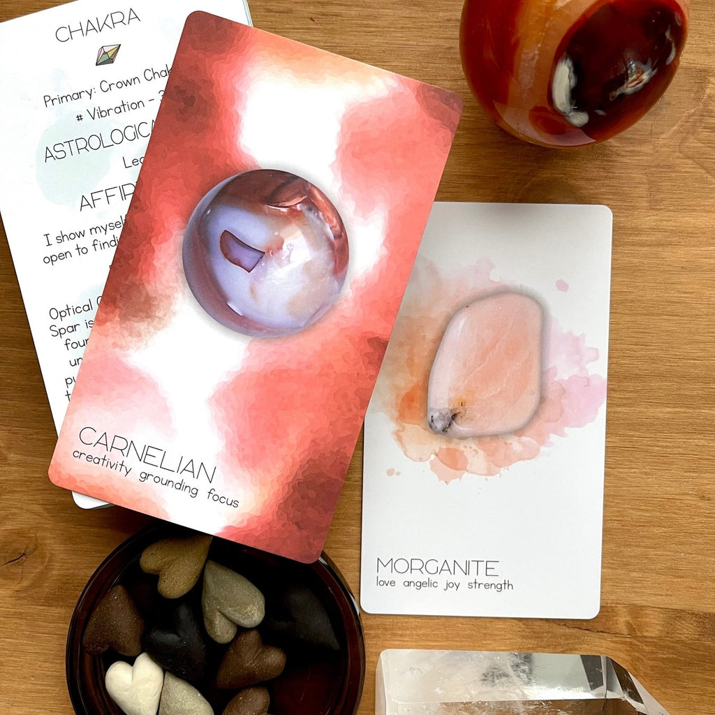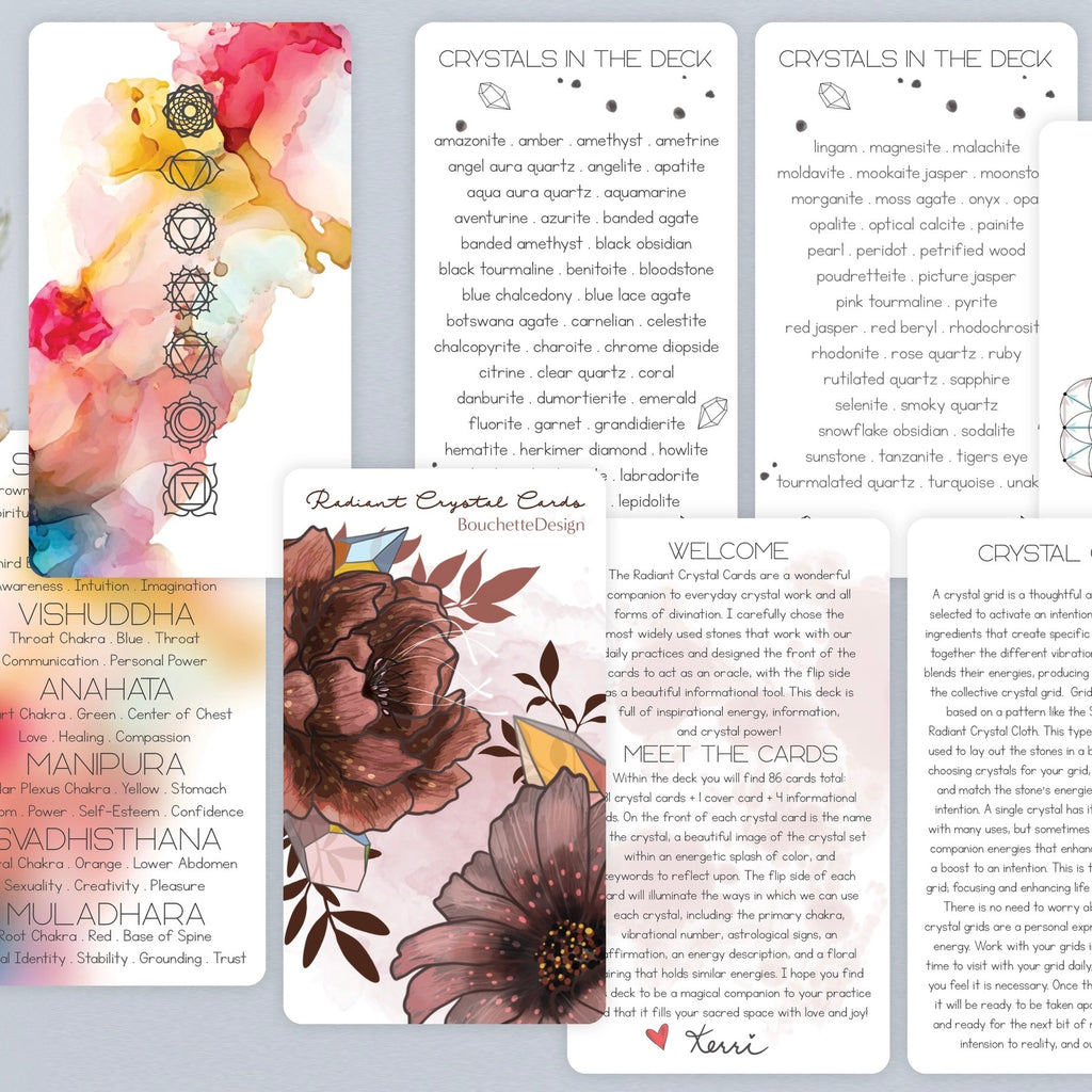 The Radiant Crystal Cards are an oracle and learning card set full of inspirational energy, information and crystal power! You can use these cards in so many ways, like on your alter, alongside the tarot, in your planner, journal, through meditation, divination and so much more. I love to use these cards as a base for crystal grids and setting intentions to emphasis their particular energies and offerings.