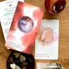 The cards have a beautiful rose petal matte hand feel and powder teel/blue painted edges! PLEASE NOTE: The DUMORTIERITE card is not included in the deck. It is listed on the Crystals In the Deck card but unfortunately due to an error, is not included within this edition.