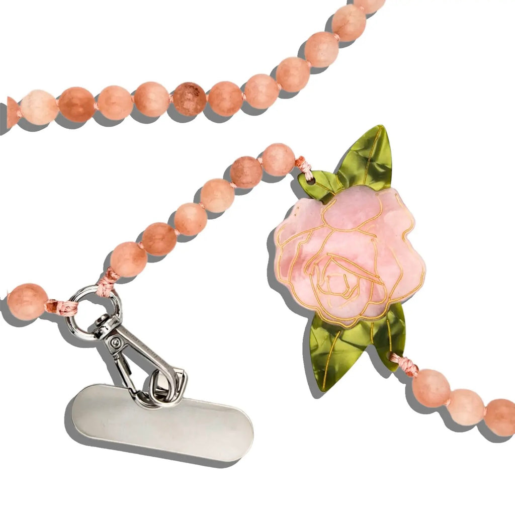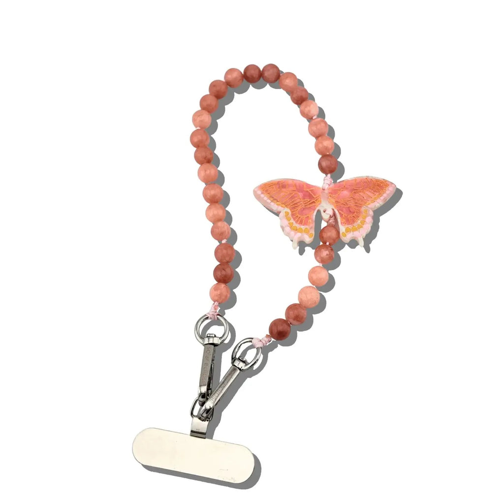 Perfect for when you want to go hands-free! Each bracelet phone chain is handmade and hand-painted and features natural gemstone beads and a hand-painted charm.