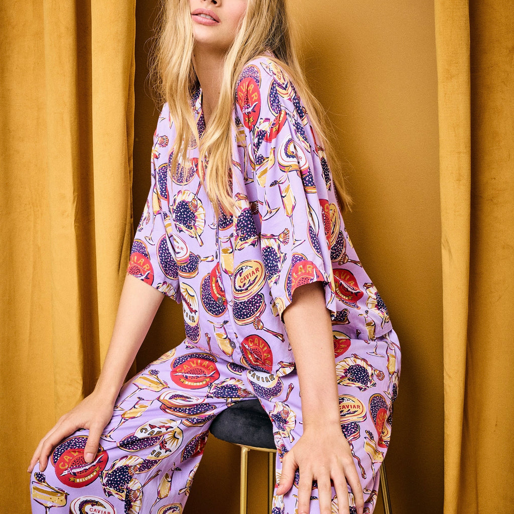 Satin Wildest Dreams Pajama Set in Lavender Champagne & Caviar