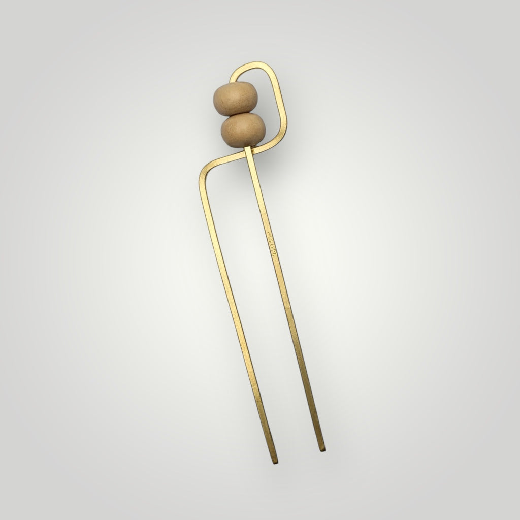 Deco Cream Wood and Brass Hair Fork