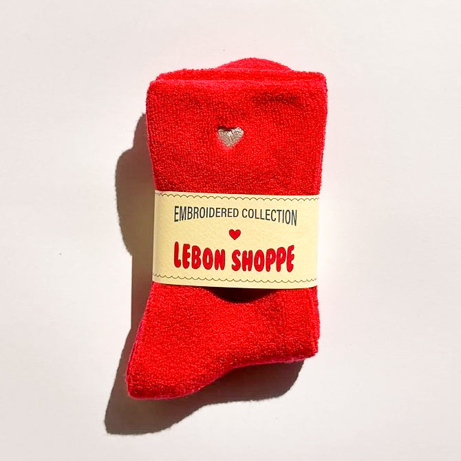 Like walking on clouds! These are hands down the comfiest and cutest socks to wear all year long. Made from a fluffy, terry cotton blend yarn that is breathable and unique. While the exterior is fluffy, the interior is smooth and airy. Now finished with an embroidered ankle detail for a little extra charm. Pair them with your favorite clogs or slides and enjoy the extra cushion.