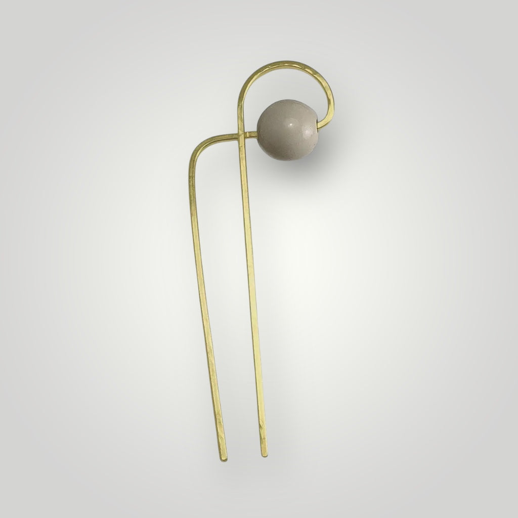 Classic modern brass hair forks with a groovy cream "gumball" detail. As functional and lightweight as our other hair forks - perfect for everyday and so pretty - you can display them as a miniature piece of sculpture when you're not wearing them.
