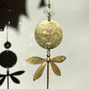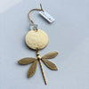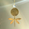Artisan-crafted dragonfly suncatcher made from hand-cut and hammered brass sheet and vintage faceted glass crystal. Ready to hang.