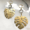 Artisan-crafted monstera suncatcher made from hand-cut and hammered brass sheet and vintage faceted glass crystal. Ready to hang.