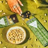 Compartés gourmet milk chocolate and popcorn Drive In bar takes you to the movie theatre with just one bite. Made with our traditional candy corn, kettle corn and caramelized movie popcorn all crunched up and drenched in our signature milk chocolate. If you go to the movie theatre and mix your chocolate with your popcorn, this chocolate bar is for you! Features a drive-in movie theatre mixed with Los Angeles Hollywood iconic on the packaging. Handmade in our Los Angeles chocolate kitchens.