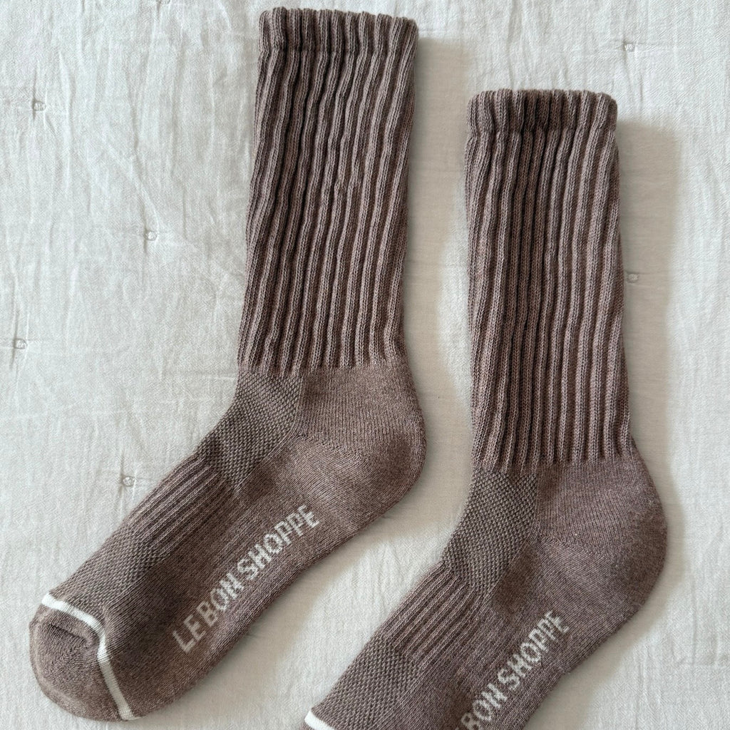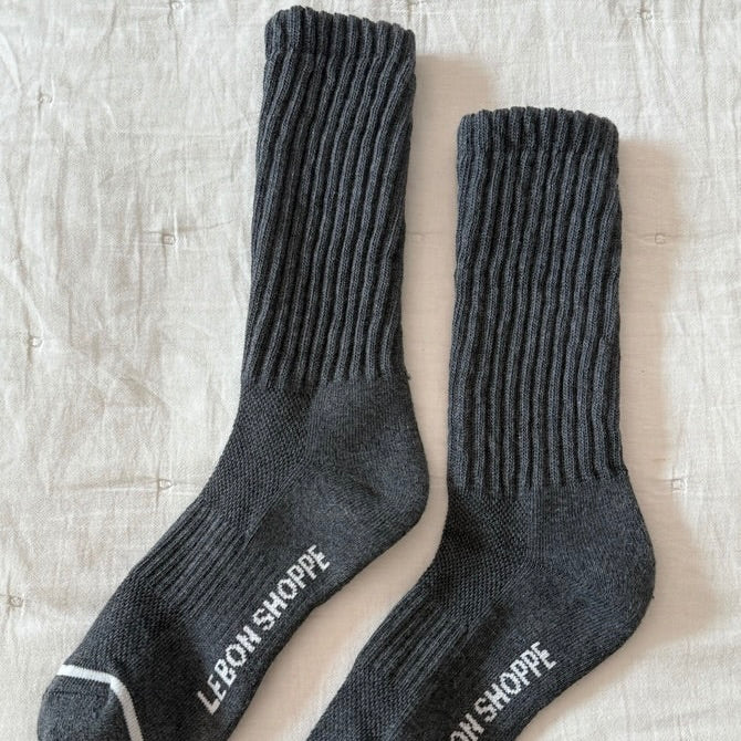 Put your best foot forward in the Ballet Socks. A thicker, ribbed leg adds bubbly texture while still maintaining support. The feel and design of the foot remain close to the Boyfriend Socks, featuring arch support and breathable mesh along the top. Perfect for dancing, scrunching, lounging, and everything in between.