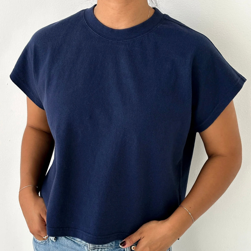 Jeanne Tee is Le Bon's perfect muscle tee. She features a shorter length to pair perfectly with high waisted bottoms but still give enough coverage for mid-rise bottoms and just the right amount of off shoulder dolman sleeve. She has a high crew neck with an extra wide neckband that adds to her signature charm.