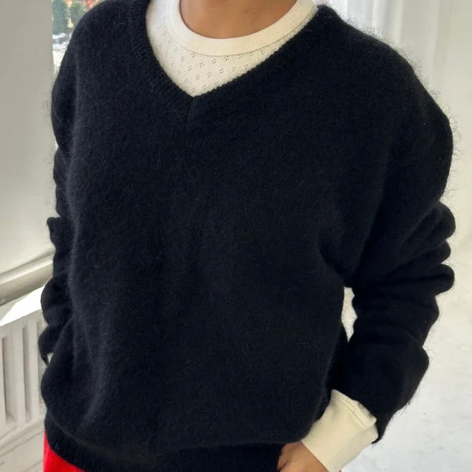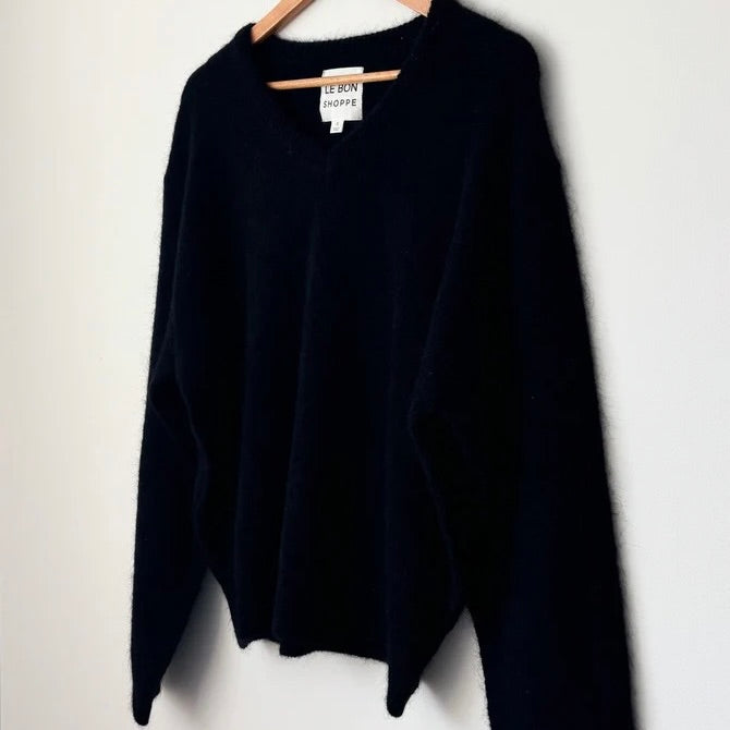 Cozy layering made simple in the James Mohair Sweater. Unlike your everyday V-neck, this sweater is made from an ultra cozy, mohair wool blend to keep you warm throughout the seasons. It features a timeless silhouette that's slightly oversized and maintains a boxy fit for easy layering without any itchiness in sight. The perfect piece to elevate any look without compromising comfort.