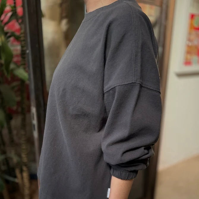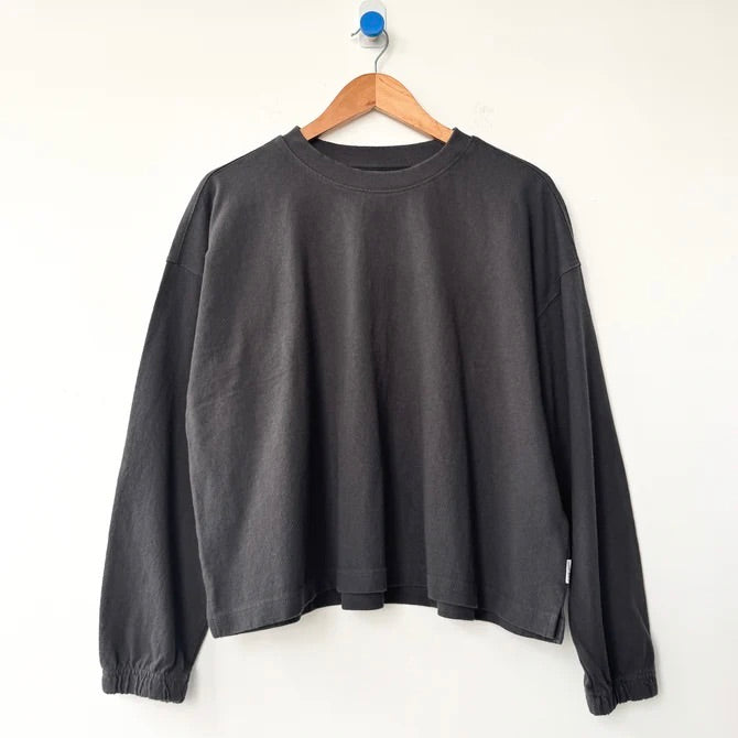 topWe dreamed this beauty up while searching high and low for a simple long sleeve with a feminine touch. This essential long sleeve tee is made in a gorgeous 100% heavyweight cotton fabric. Super raw textured yet soft and airy! Elastic ruched sleeve opening creates a slight balloon sleeve effect worn down and scrunches up beautifully. This tee is garment dyed and pre-washed for a rich textured look.