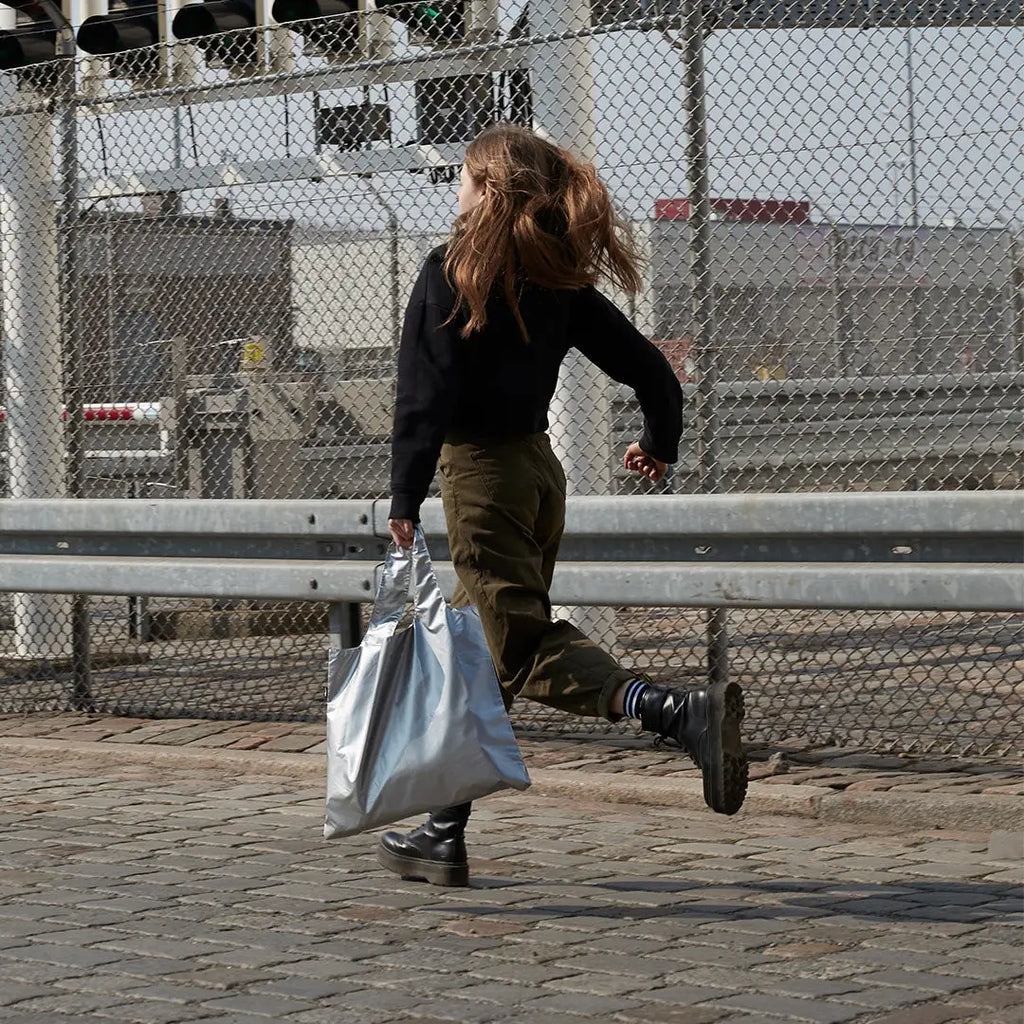Elevate your look with our metallic silver tote—a marvel of modern elegance. Light and soft to the touch, its pliable design moves with ease. The metallic finish catches the light, adding a subtle shimmer that’s both captivating and effortlessly chic. This feather–light tote is an essential accessory for any fashion-forward wardrobe.