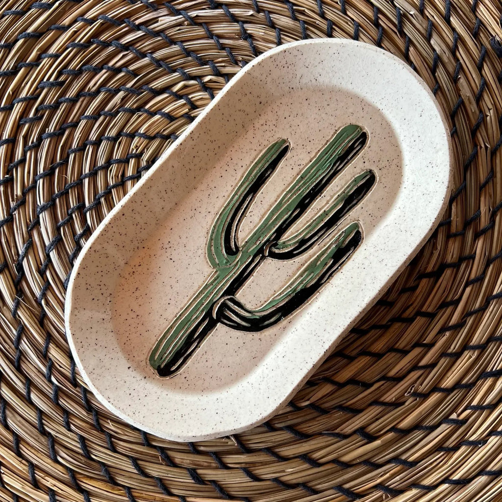 Saguaros are the sentinels of the desert, and this dish will remind you of their beauty and wisdom! A great dish to hold your trinkets, candles, salt cellars- you name it.