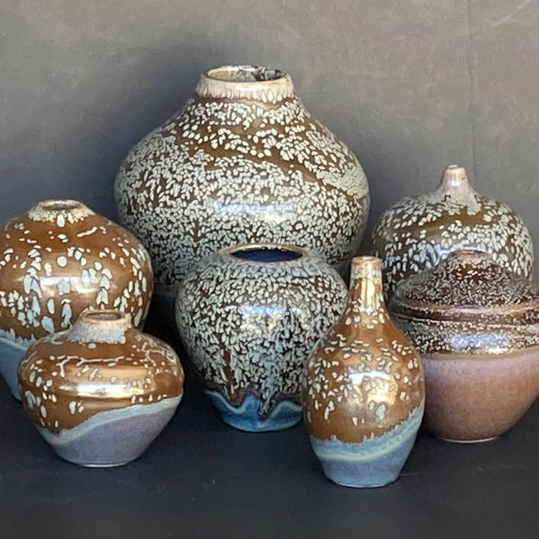 Small Saturn Necklace: Speckled White with Light Blue Splatter
