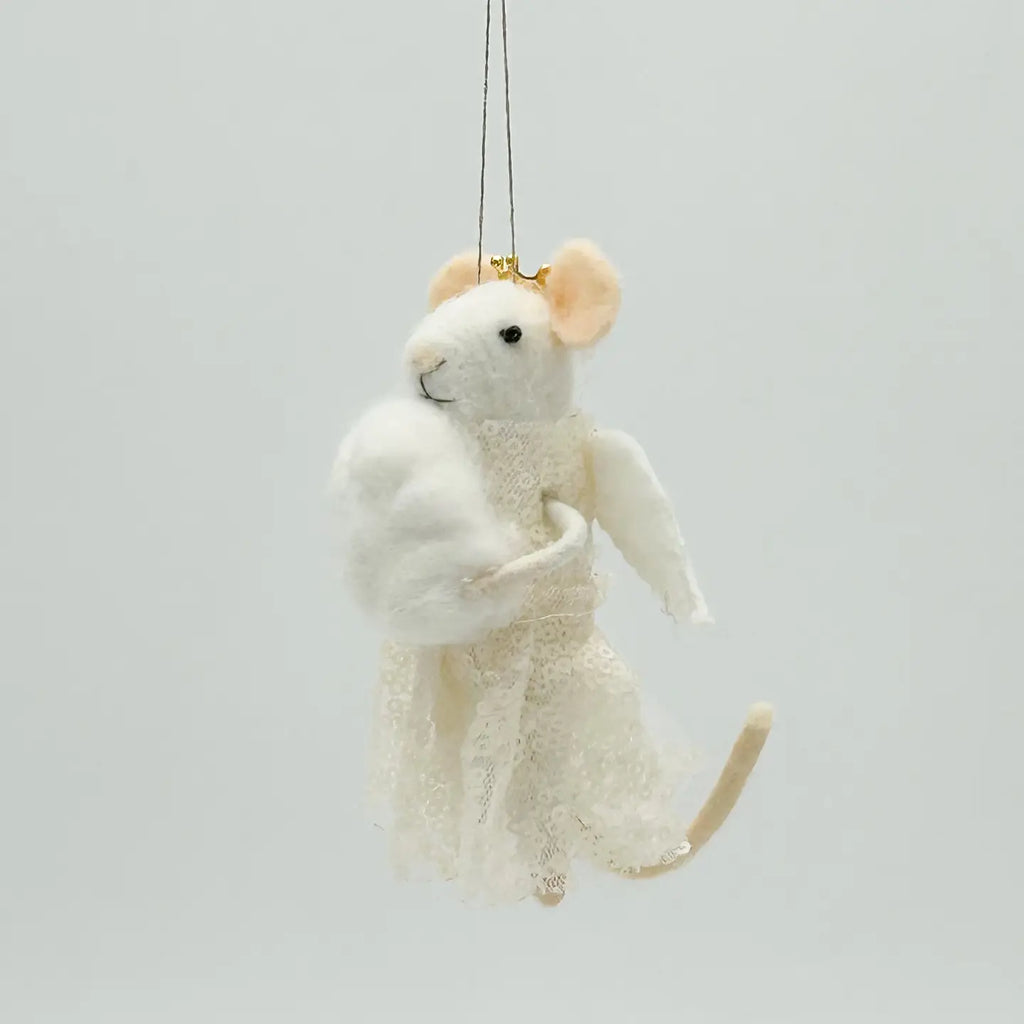 An instant favorite, made from soft wool/polyester felt and dressed in adorable outfits. These cuties are charming hung on a festive tree, on wine bottles or sitting on the shelf supported by their wire tails.